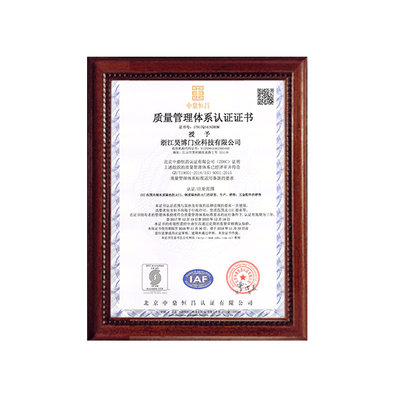公司一直以來嚴(yán)格執(zhí)行ISO9001質(zhì)量體系和ISO14001環(huán)境管理體系標(biāo)準(zhǔn),建立了完備的科研、開發(fā)、生產(chǎn)、銷售服務(wù)體系。公司是浙江省門業(yè)協(xié)會(huì)會(huì)員單位,江山門業(yè)協(xié)會(huì)理事單位,中國(guó)木材與木制品流通協(xié)會(huì)會(huì)員單位,江山市消防協(xié)會(huì)副會(huì)長(zhǎng)單位。
